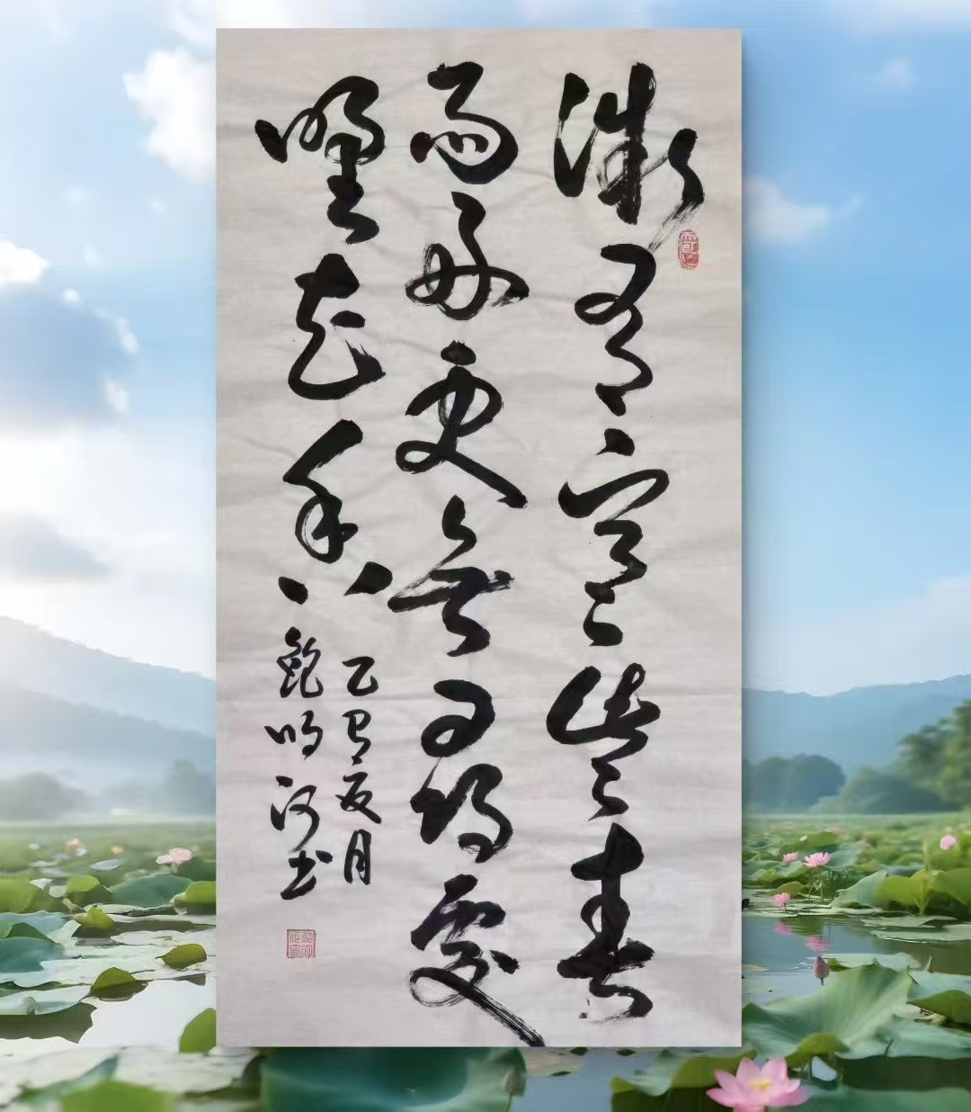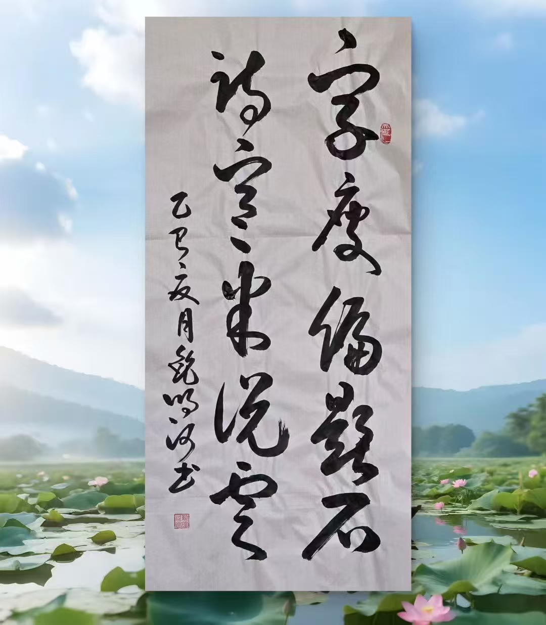 鲍明河,男,汉族,1953 年 2 月,山东肥城人,中国共产党员,1975 年入党。本人爱好音乐,笛子,酷爱书法 30 多年,重点学习欧阳询王羲之书法,现为中国书画家协会会员。作品已被美国,德国,法国,加拿大,俄罗斯以及东南亚 21 个国家商务人士收藏。中法大使馆作为国礼赠送法国政府。
