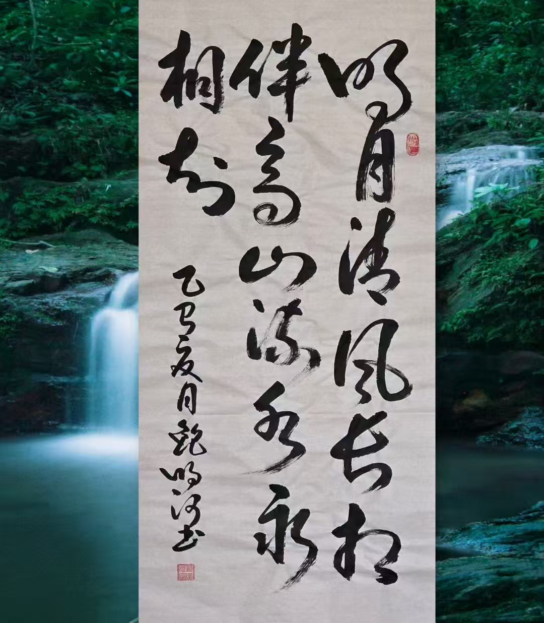 鲍明河,男,汉族,1953 年 2 月,山东肥城人,中国共产党员,1975 年入党。本人爱好音乐,笛子,酷爱书法 30 多年,重点学习欧阳询王羲之书法,现为中国书画家协会会员。作品已被美国,德国,法国,加拿大,俄罗斯以及东南亚 21 个国家商务人士收藏。中法大使馆作为国礼赠送法国政府。